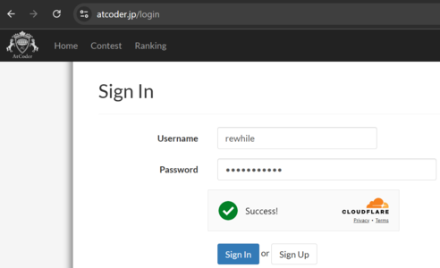 What's up with this abomination of cloudflare usage? I think https://atcoder.jp/login is more reasonable: